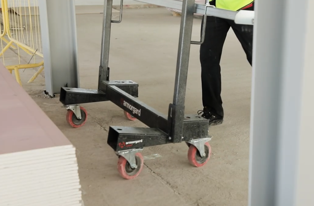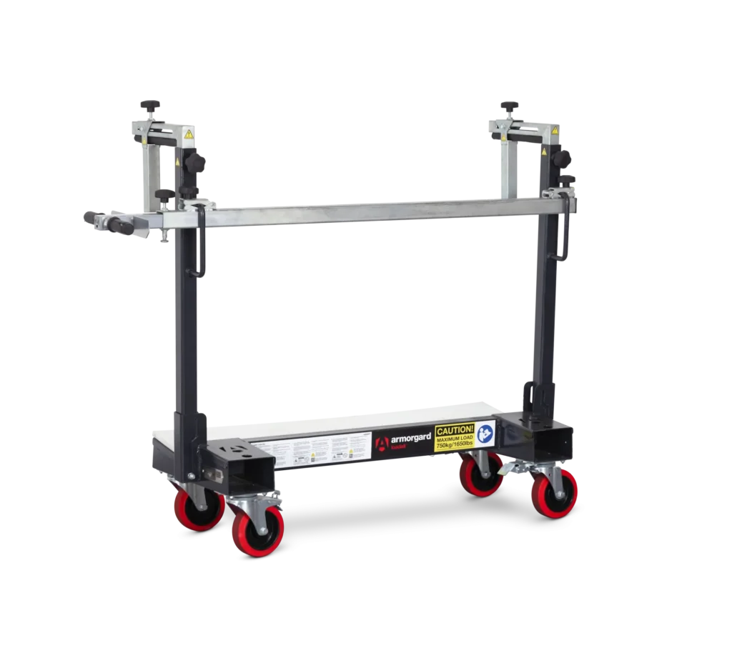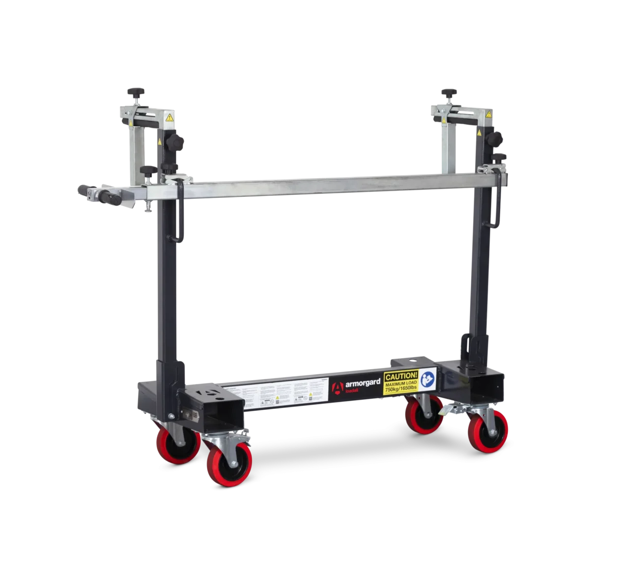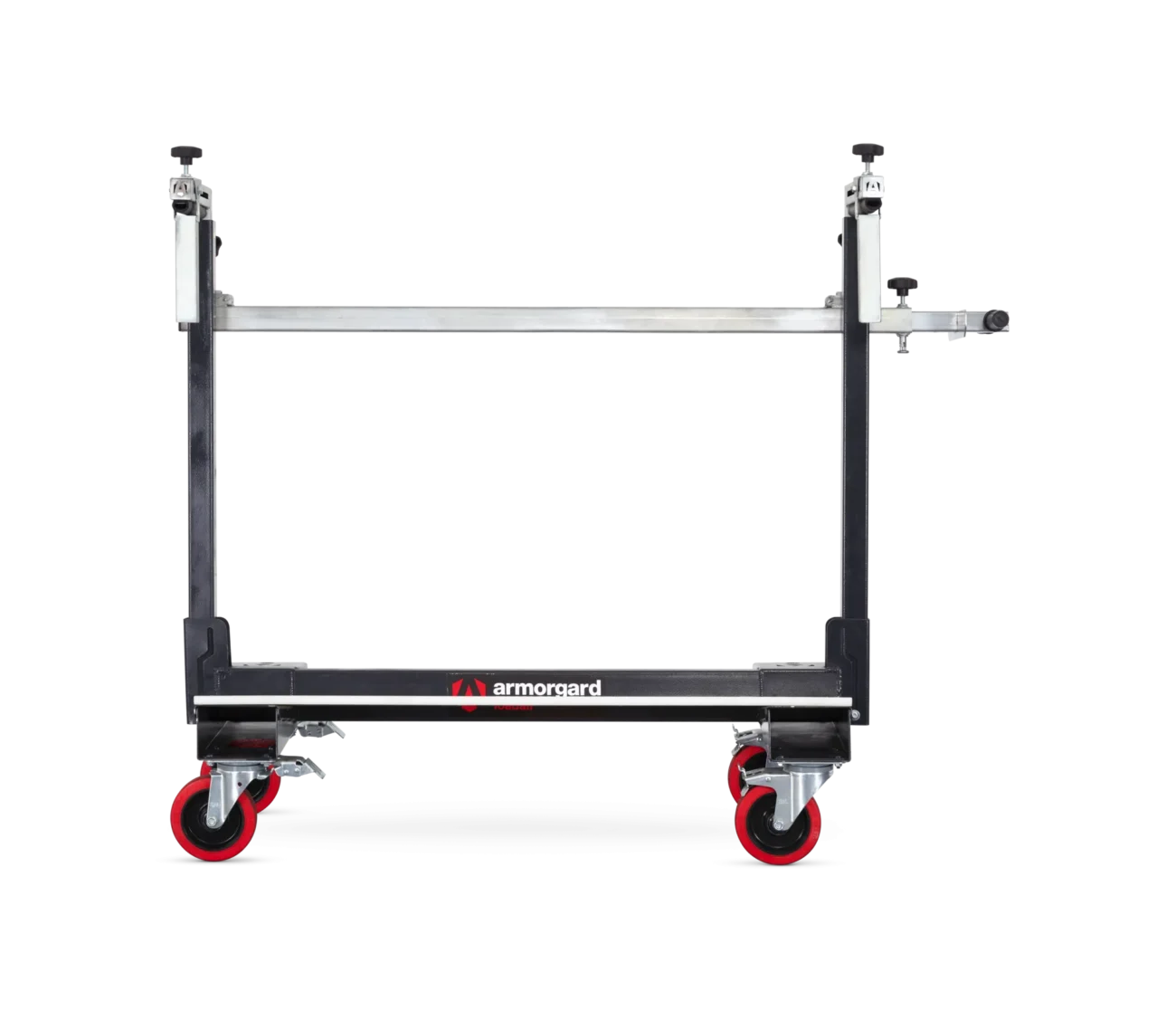 The directional lock casters offer controlled movement even when fully loaded, allowing installers to steer confidently across uneven surfaces or busy jobsite paths. Armorgard’s patent-pending clamp system is one of the biggest safety jumps in the category locking materials in place to prevent shifting, tipping, or sliding while in motion.
