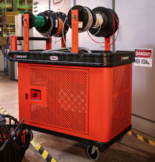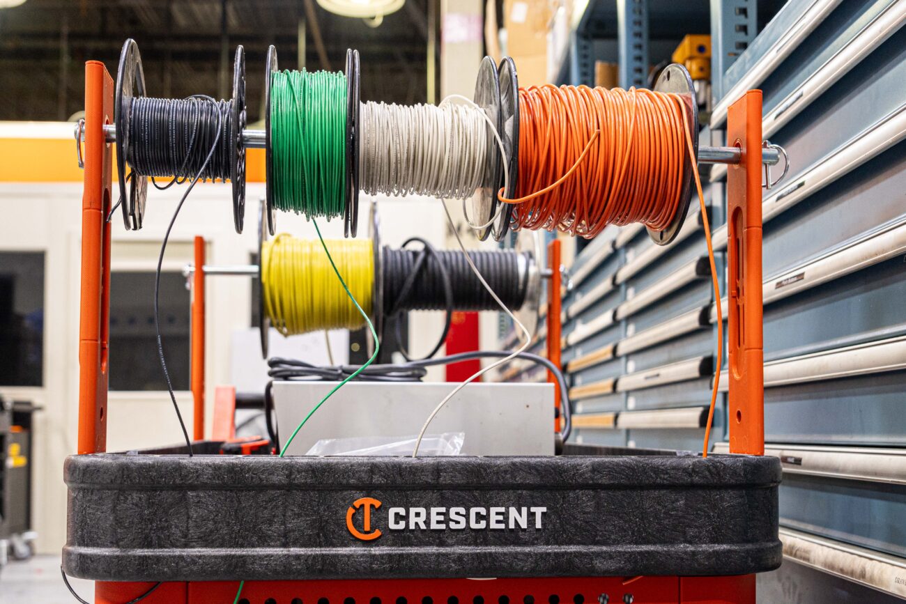 That matters because it helps move wire spools up to a more ergonomic working height, keeps the cart more organized, and frees up shelf space for additional tools and supplies.