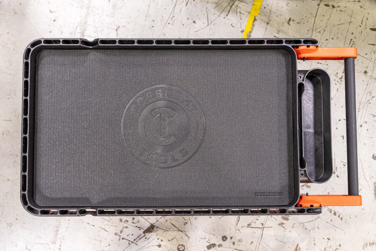 It includes the same modular design features as the rest of the line, but the 8-inch semi-pneumatic wheels make it a better fit for tougher surfaces, transitions, and heavier-duty movement between work zones.