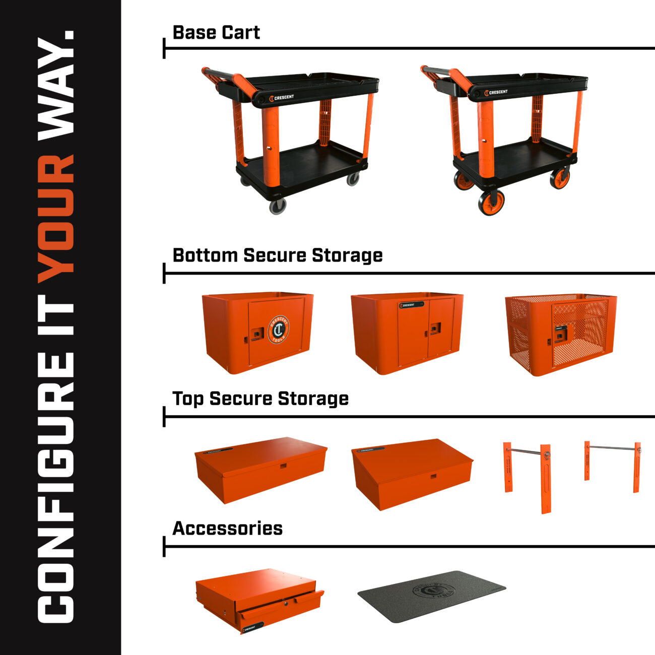 The Crescent RAILWORKS utility cart system is a customizable mobile cart platform built around productivity, organization, and security. At the center of the system are two main cart bases: