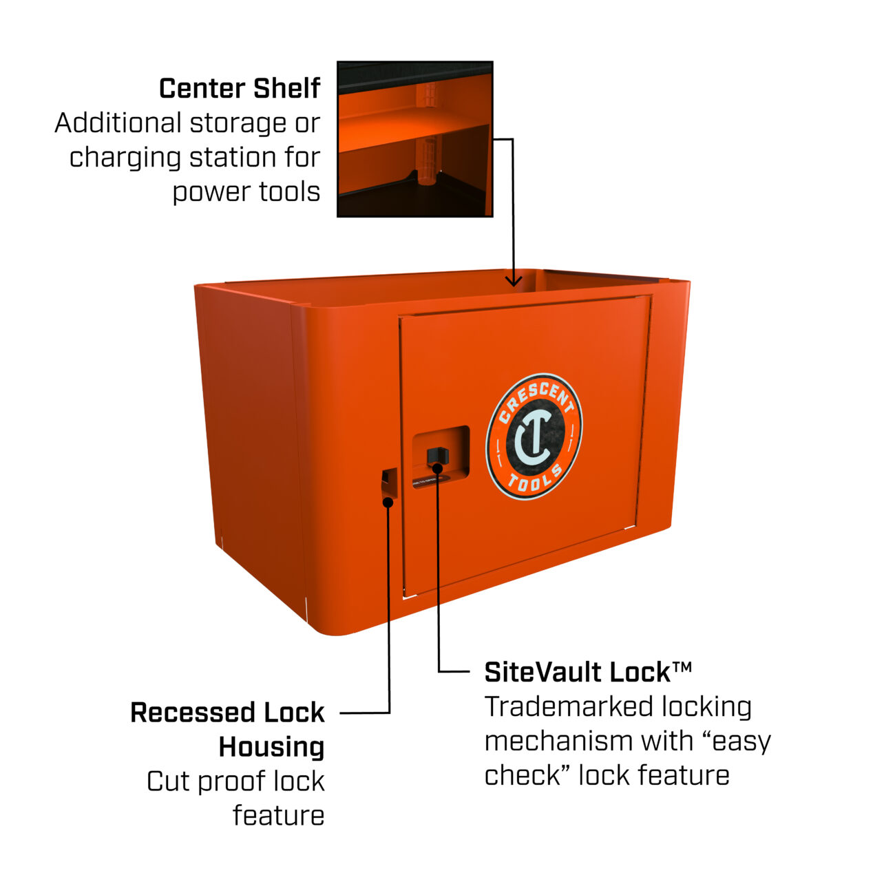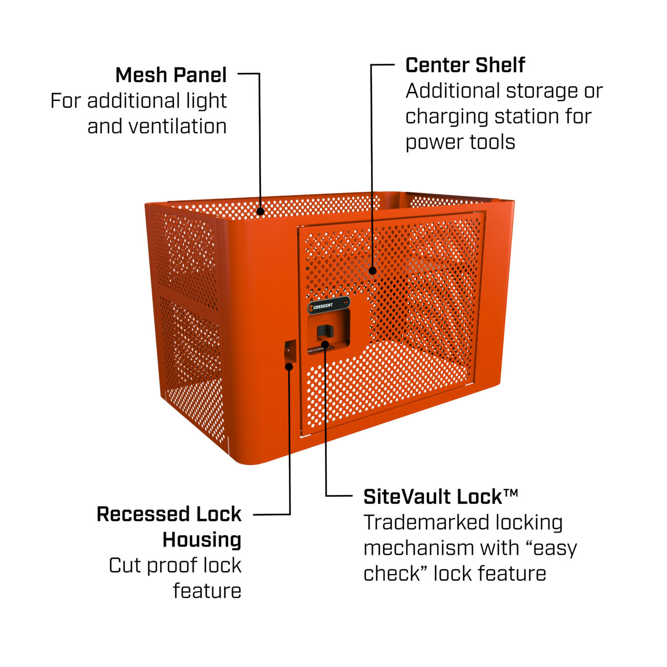 For crews carrying valuable hand tools, batteries, testing equipment, or supplies that should not be left exposed, this setup adds a major upgrade in jobsite security without giving up the open-cart functionality of the overall platform. It also assembles in as little as 15 minutes and ships in two cartons on one pallet for easier handling.