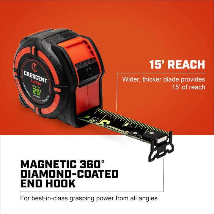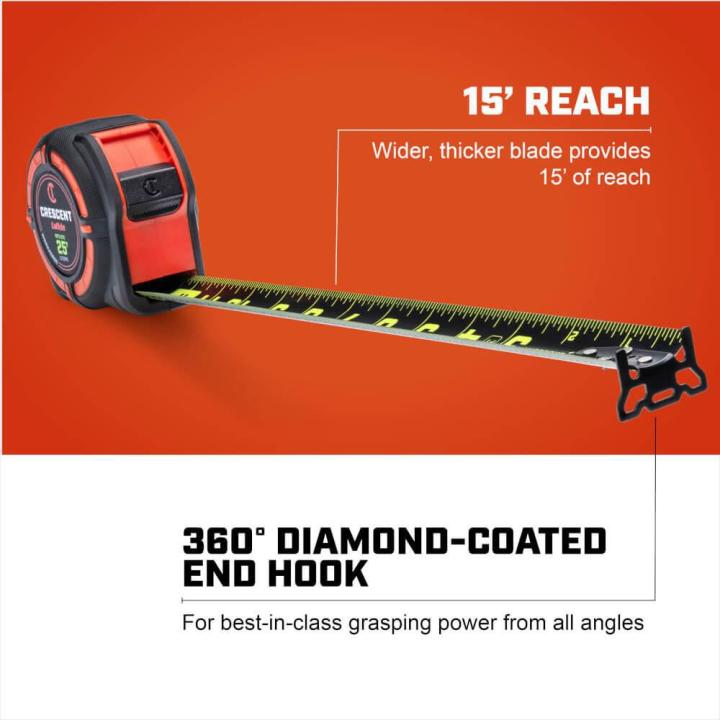 A 360-degree end hook allows you to grab materials from any angle, while the impact-resistant ABS case protects the tape from everyday drops. With 14 feet of standout, this tape is ideal for solo measurements and general jobsite use. Like the rest of Crescent’s lineup, it’s backed by a full lifetime warranty, reinforcing its long-term value.