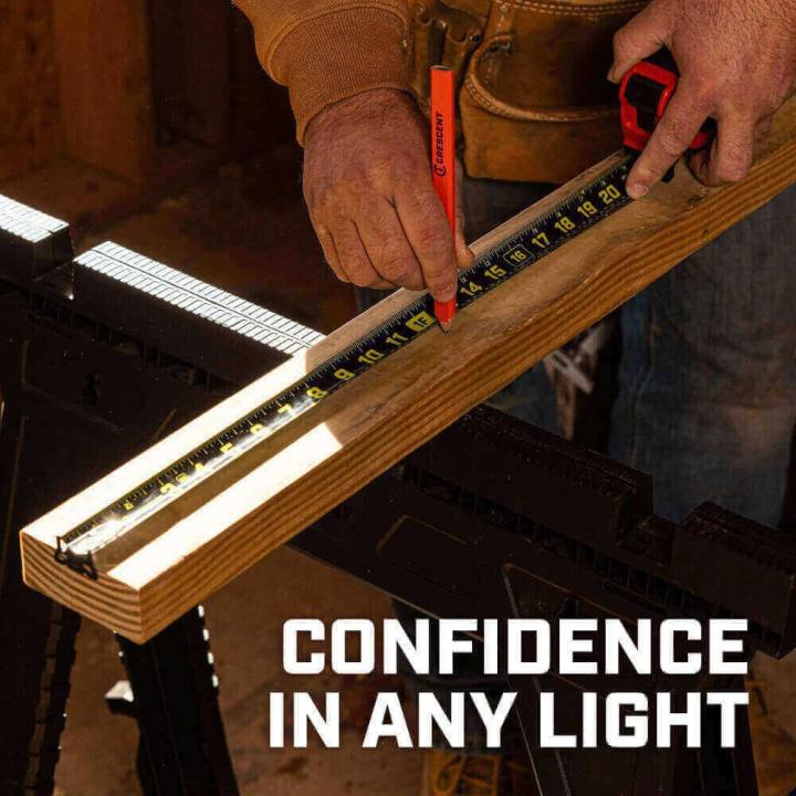 For the toughest jobsite conditions, Crescent’s SHOCKFORCE NITE EYE tape measures are engineered for extreme durability and superior blade performance. These tapes are drop-tested from 120 feet onto concrete, making them some of the most rugged tape measures Crescent has ever produced.
