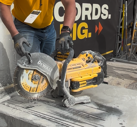 DeWalt is claiming this is the most powerful cordless cut-off saw they’ve produced and based on the live demos chewing through #5 rebar, that claim has some teeth.