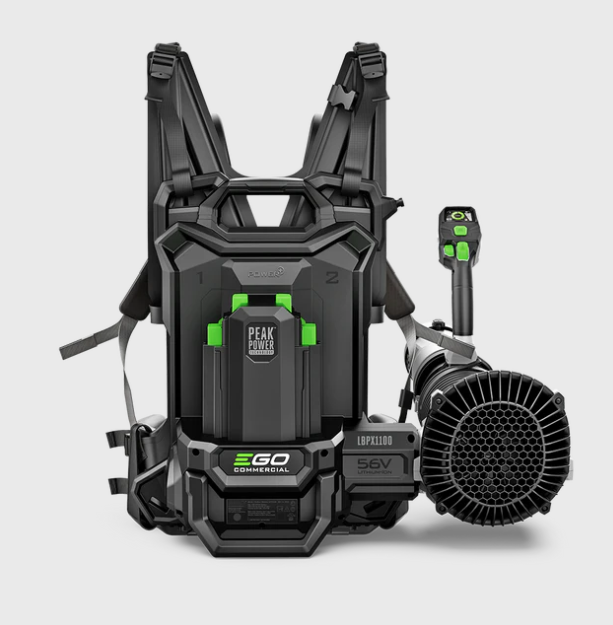 Backpack blowers are one of the quickest ways to tell whether a cordless tool is truly commercial or just “looks the part,” and EGO clearly built the LBPX1100 Commercial Backpack Blower to be taken seriously. This unit delivers up to 1000 CFM, air speeds up to 190 MPH, and 33N of push force, numbers that put it in the same conversation as heavy-duty gas backpack blowers used for large property cleanup and daily route work. Under the hood, it runs a high-performance 2,700W brushless motor supported by intelligent electronics, and EGO rates it as the battery-powered equivalent of a 65cc gas engine.