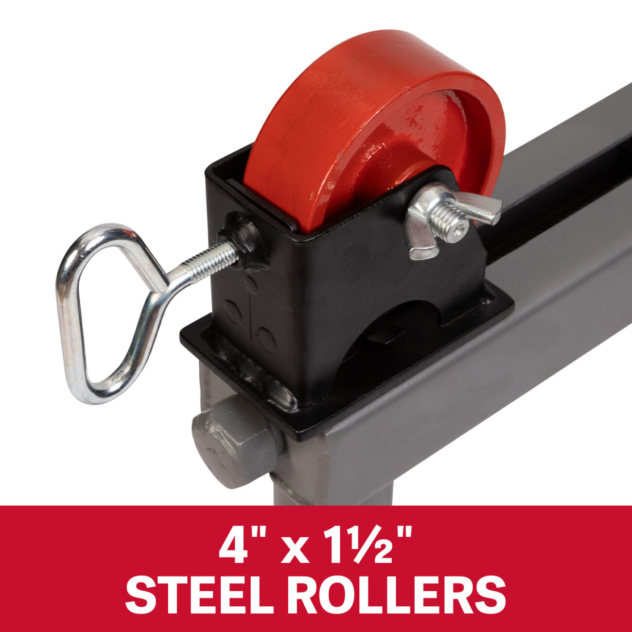 When portability meets precision, you get the Folding Pipe Jack Stand with Steel Rollers. This version folds for transport, sets up fast, and stays rock-solid once locked under load. Supporting 2,500 pounds and pipe up to 24 inches in diameter, it uses 1-1/4” wide steel rollers that reduce drag and improve handling of large, heavy pipe.