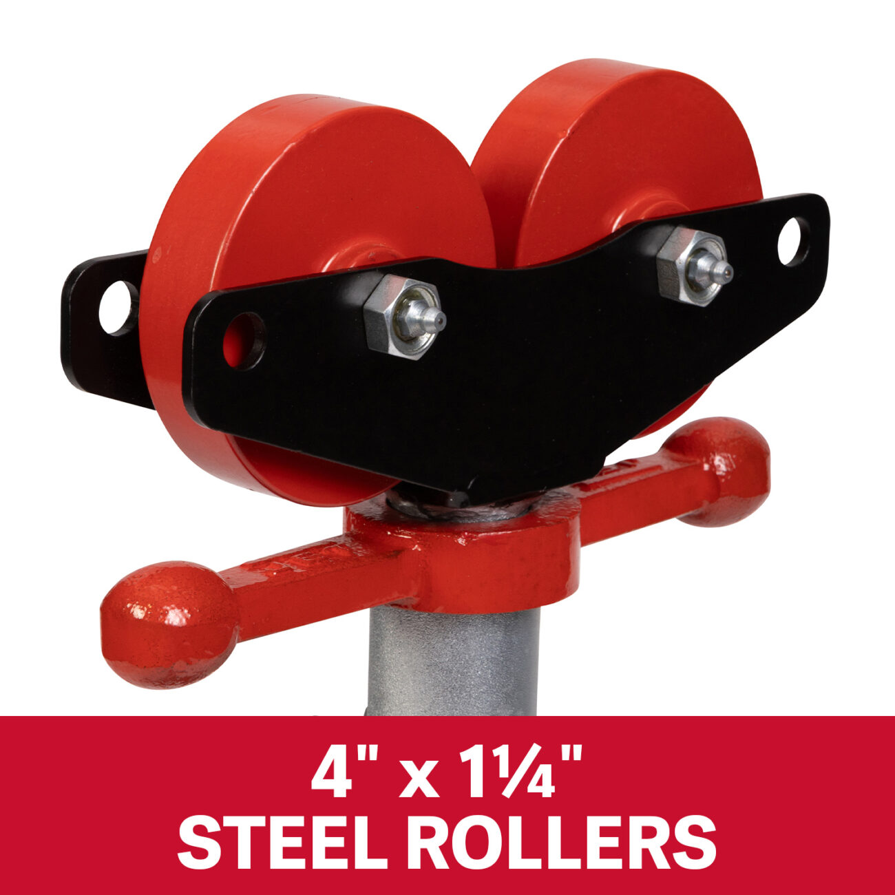 For pipefitters and welders who need rotation and control, JET’s Adjustable Roller Stand is the solution. This model supports 2,500 pounds and handles pipe up to 36 inches in diameter with adjustable roller spacing that adapts to different pipe sizes.
