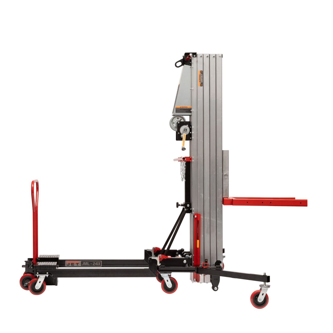 For the tallest tasks, the 24-foot Material Lift delivers maximum reach and professional-grade control. Ideal for warehouses, industrial maintenance, or large construction sites, it maintains stability even at full extension. The internal mast brake provides precise control during raising and lowering, and the heavy-duty steel frame ensures dependable performance through years of use. When height, safety, and mobility matter most, this model stands above the rest.