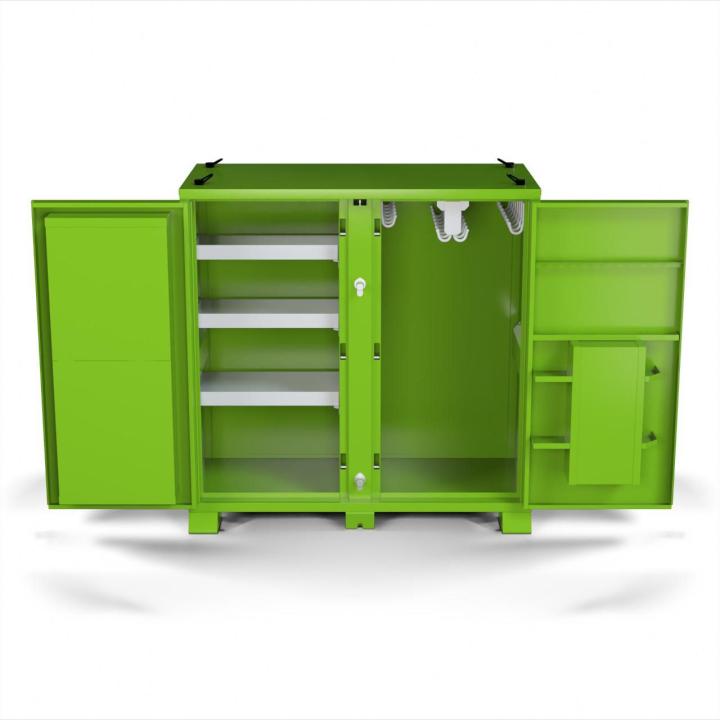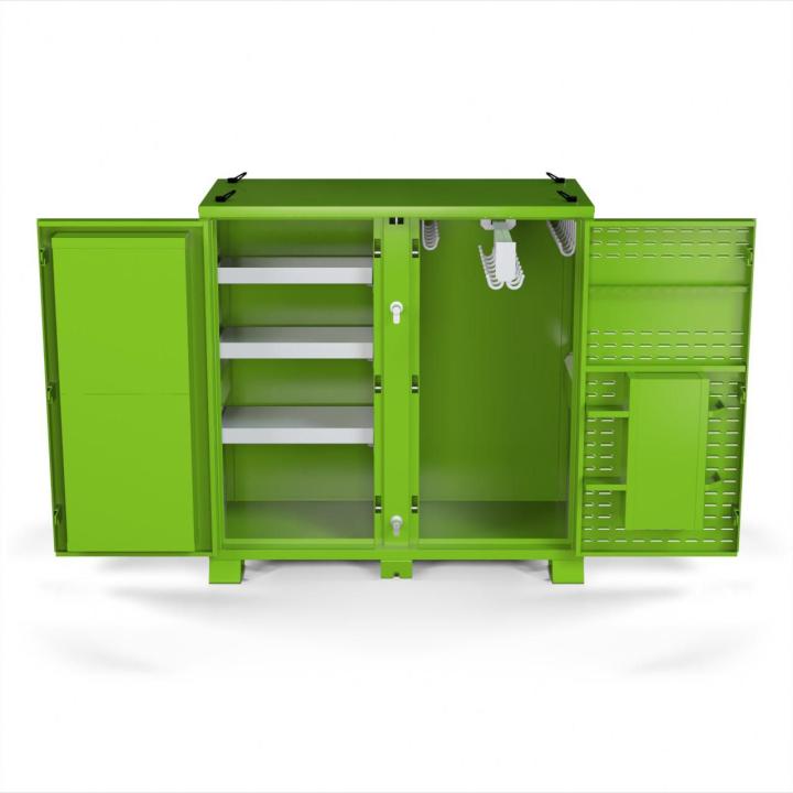 The first thing crews notice about these cabinets is the Hi-Viz green powder-coated finish. It’s not just for looks, this color choice makes the cabinet easy to spot in crowded, fast-moving environments while also providing corrosion resistance for long-term durability. When PPE is easy to find, compliance improves and downtime disappears.