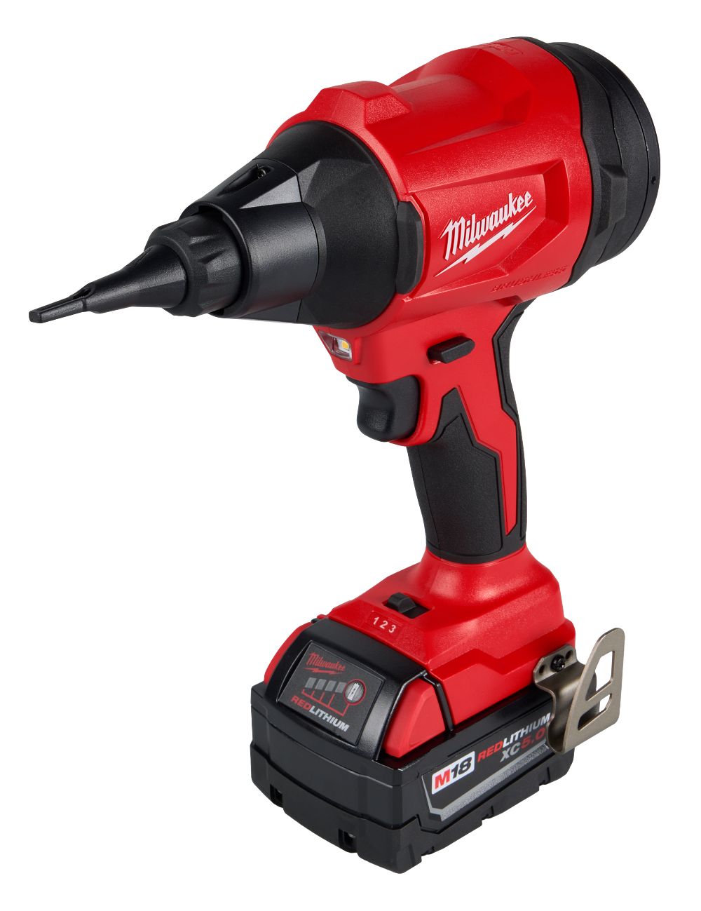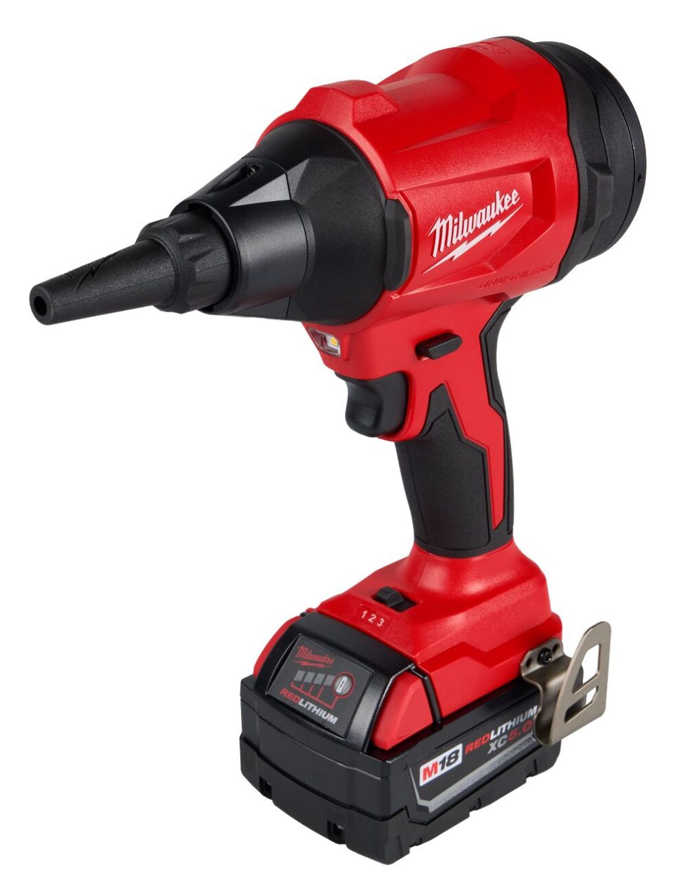 To keep everything organized, the kit includes a magnetic nozzle holder that features magnets, hang holes, and a lanyard loop. This makes it easy to store accessories on carts, metal cabinets, or tool bags so nozzles stay accessible instead of getting lost between jobs. The battery and charger are sold separately (kit – 48-59-1850) (XC5.0 battery – 48-11-1850), making this an easy add-on for anyone already invested in the M18 platform without forcing them to buy into a new system.