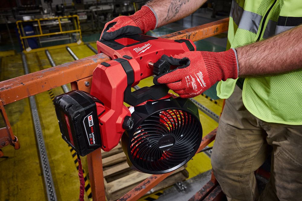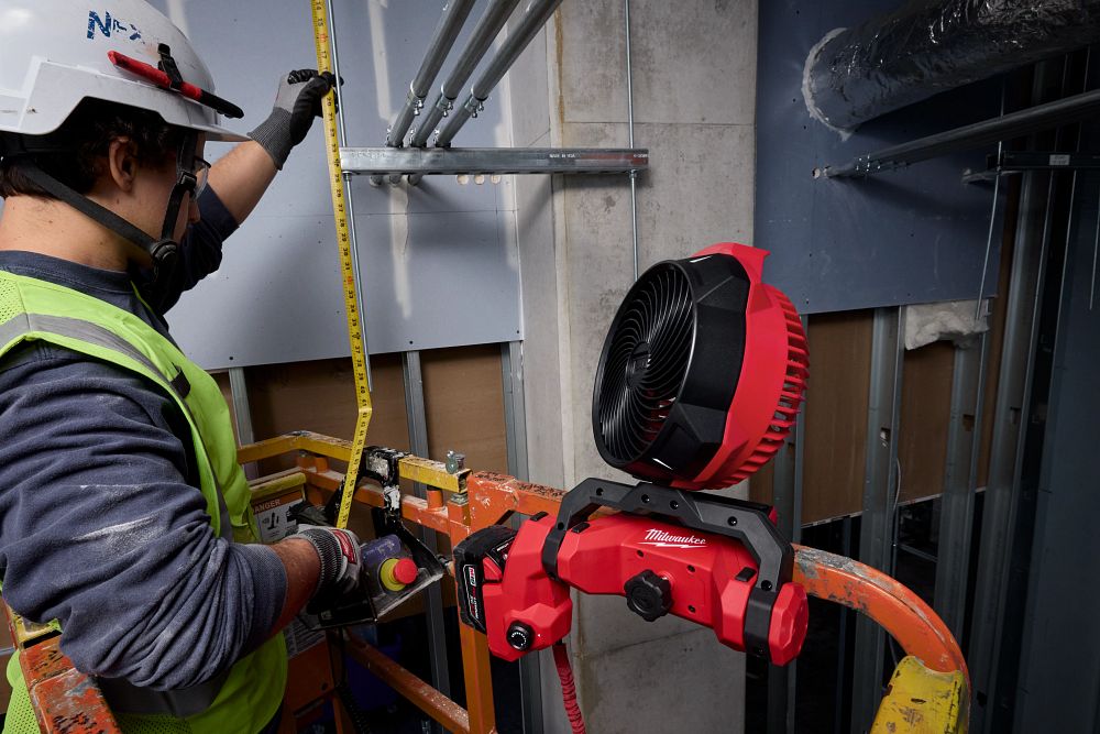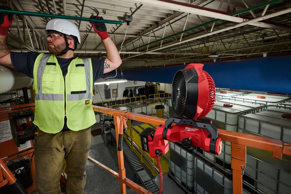 Milwaukee built this fan as the industry’s first dedicated scissor lift cooling solution, giving tradespeople a reliable way to stay comfortable while working at height.