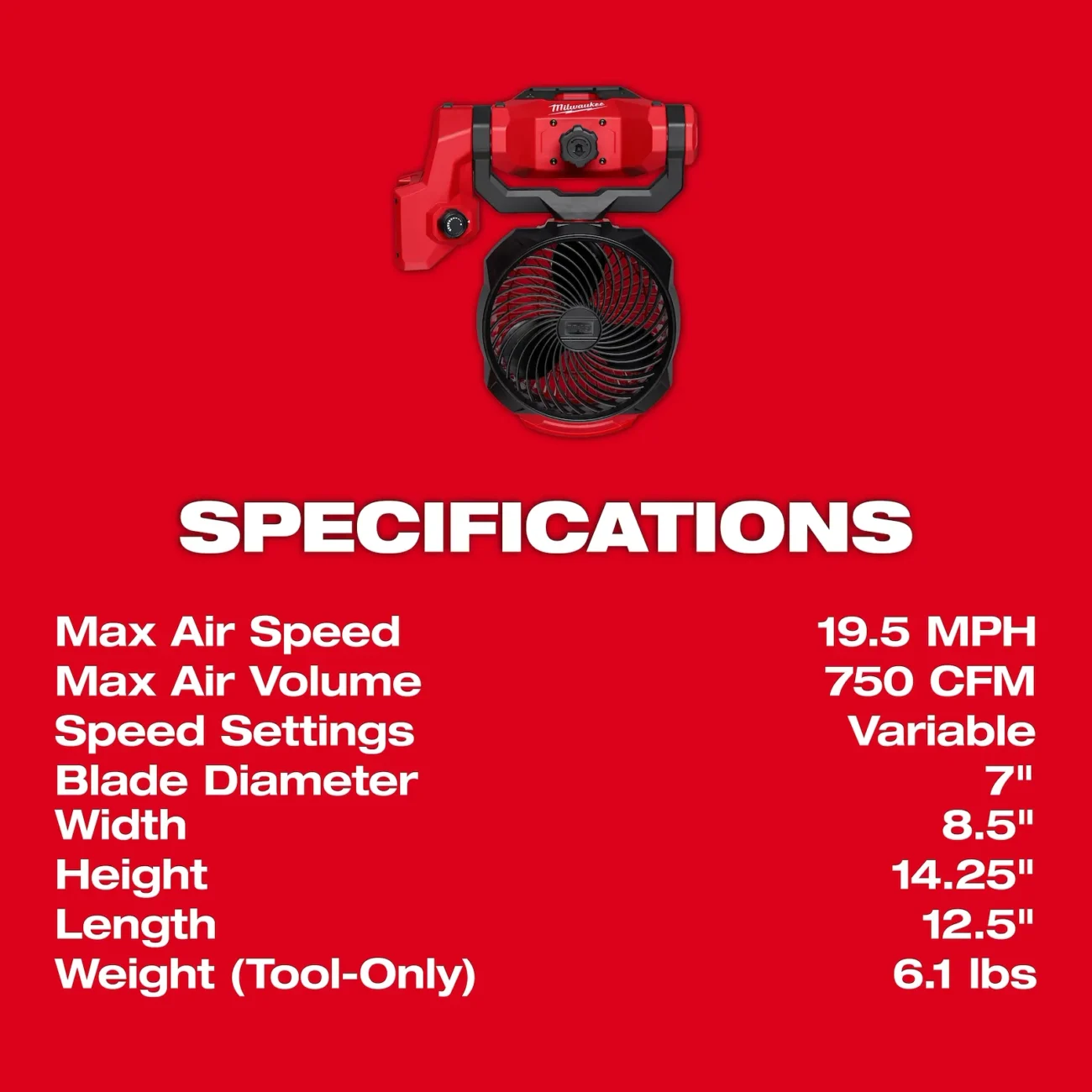 At just 6.1 pounds, the fan remains lightweight enough to transport easily between jobs or reposition throughout the day.