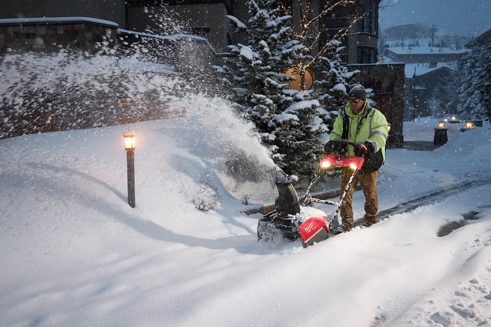 The 21″ clearing width, combined with an auger-propelled rubber paddle system, makes it easy to push through deep, heavy snow. This isn’t just for dustings either. With (2) M18 REDLITHIUM FORGE 12.0 batteries, this machine can clear up to 500 feet of 3.5-foot-wide sidewalk or 11 car spaces in 6 inches of snow. That’s serious runtime, plus, the machine has four battery terminals, so you can double up for even longer clearing sessions.