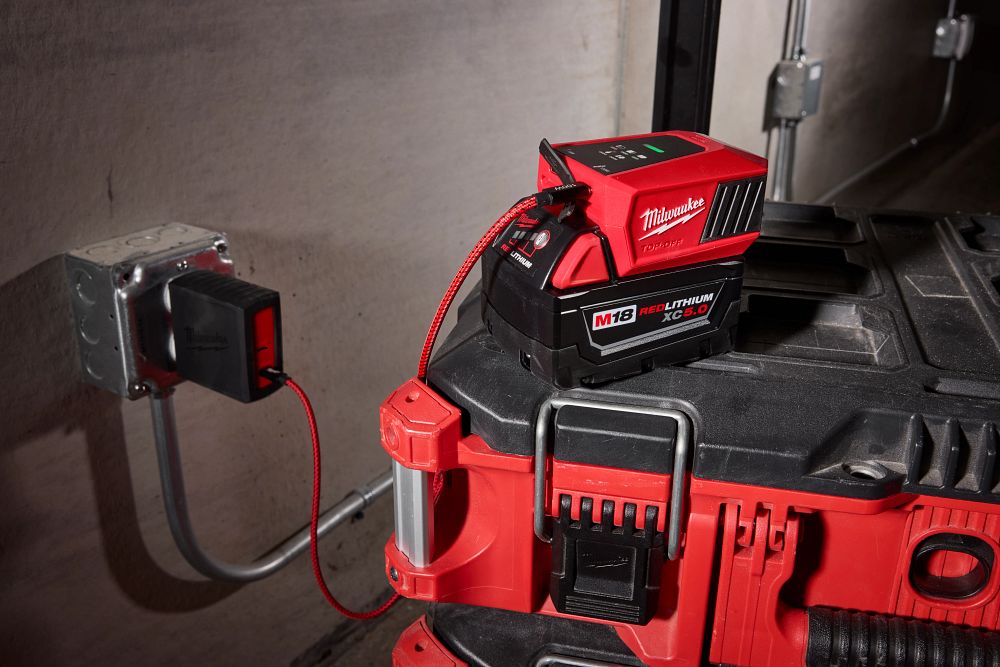 Milwaukee reinforces this intent by including both the USB-C cable and a 65W wall adapter, giving the user a complete kit out of the box rather than requiring extra accessories.