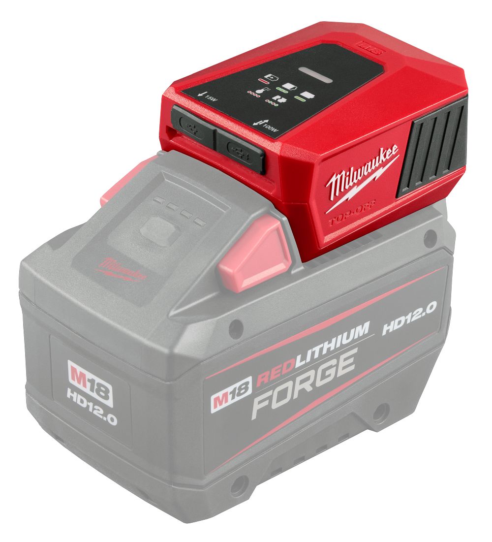 Before comparing them directly, it’s important to frame what TOP-OFF is intended to be. Milwaukee is not positioning these tools as replacements for full-size chargers, nor are they designed to handle high-draw applications like corded saws, grinders, or jobsite equipment.