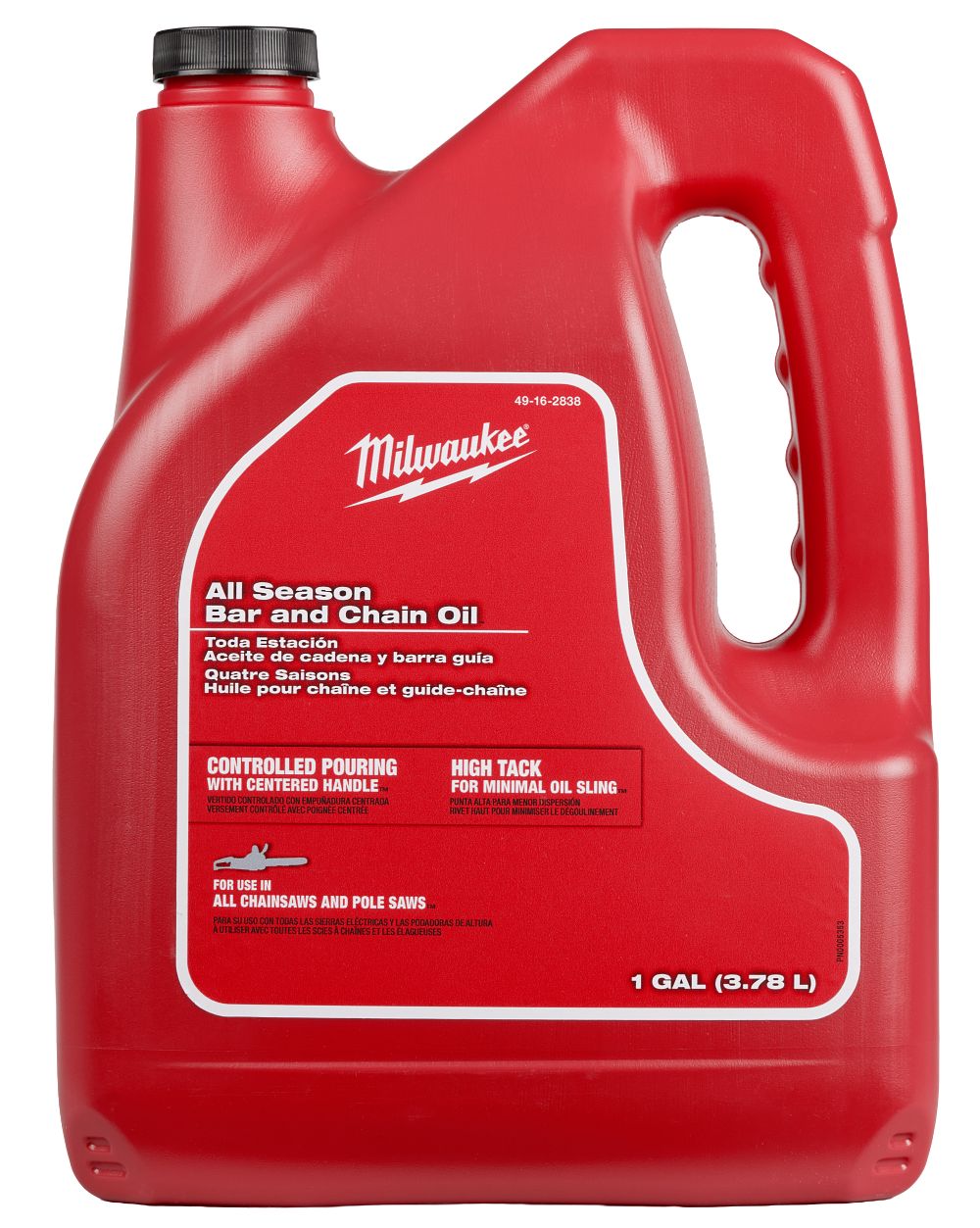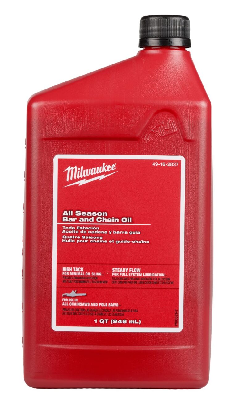 Available in both 1-Quart (49-16-2837) and 1-Gallon (49-16-2838) sizes, Milwaukee’s All Season Bar and Chain Oil features a high-tack formula that minimizes sling while providing a steady, reliable flow for full system lubrication. Its centered handle design ensures controlled, mess-free pouring, making it easier to refill without spills or overflows. Safe for use with all chainsaws and made in the USA, this oil is engineered for consistent performance in any season.