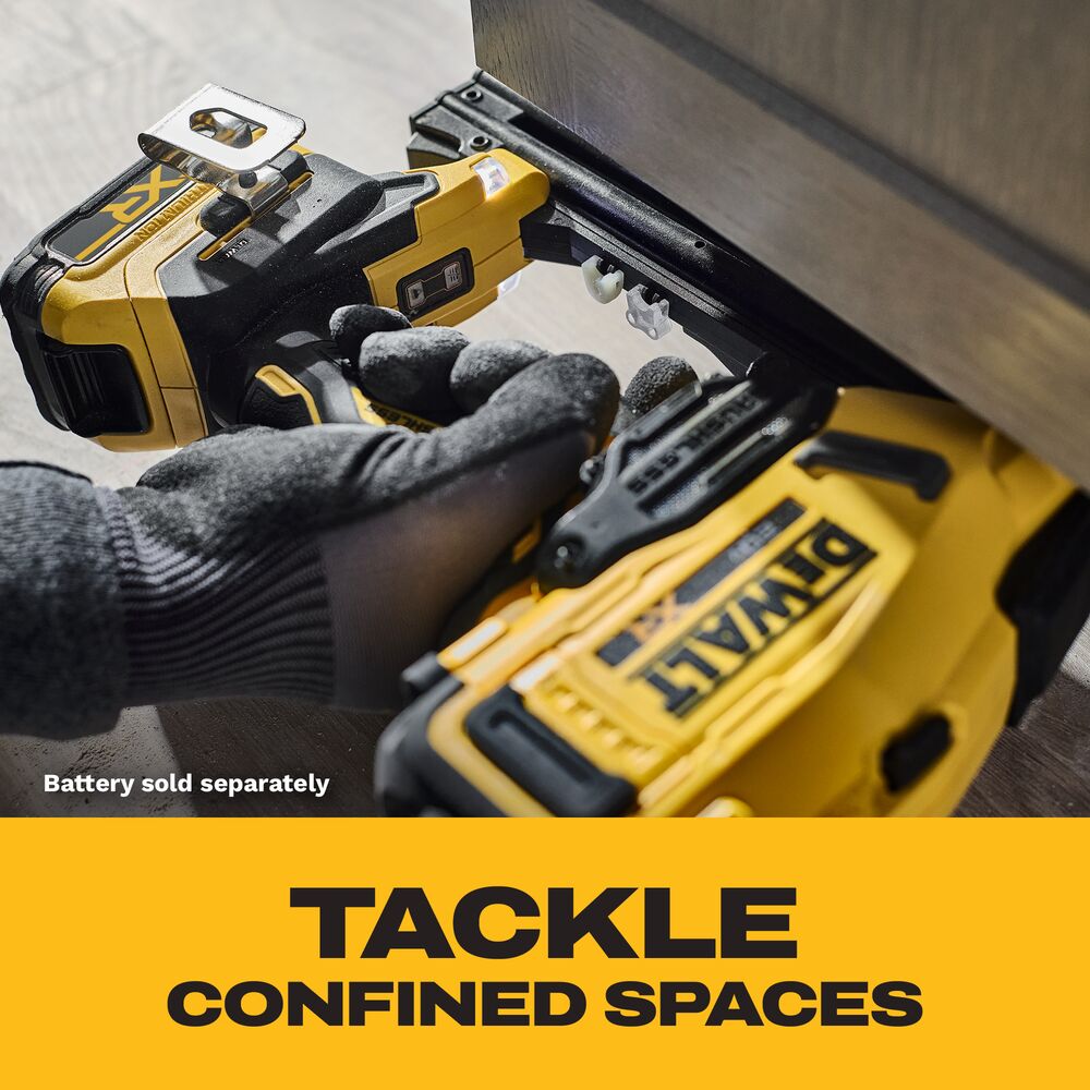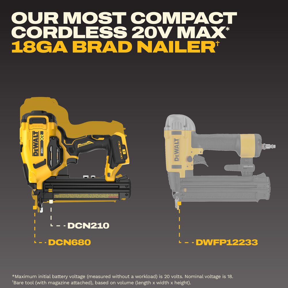 –Most compact 20V MAX XR 18GA brad nailer DEWALT has released –Only 10.2 inches in height, making it easier to work in tight or awkward spaces