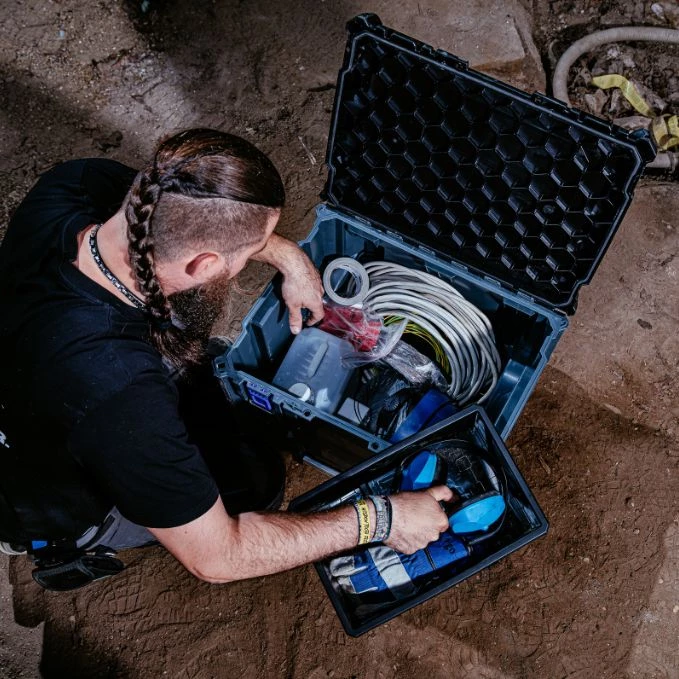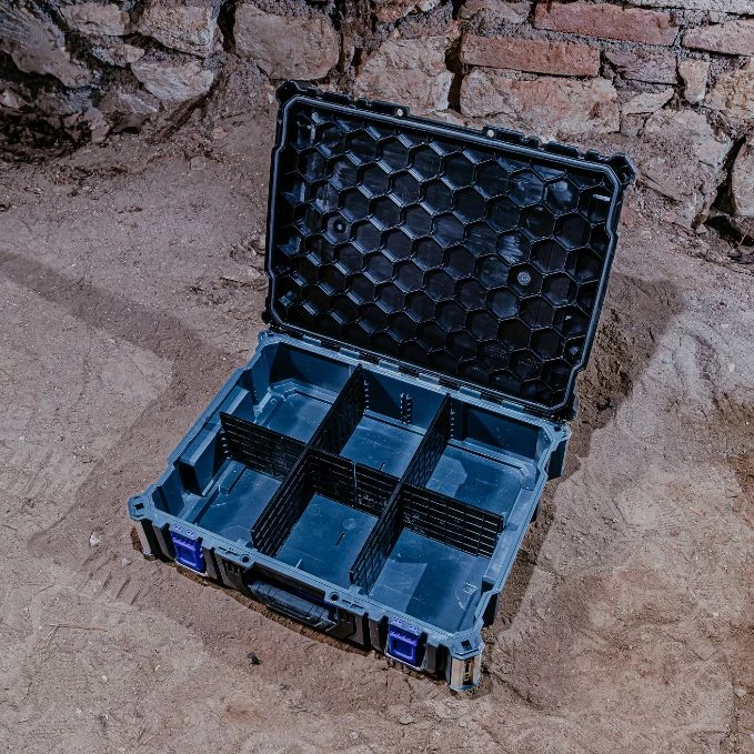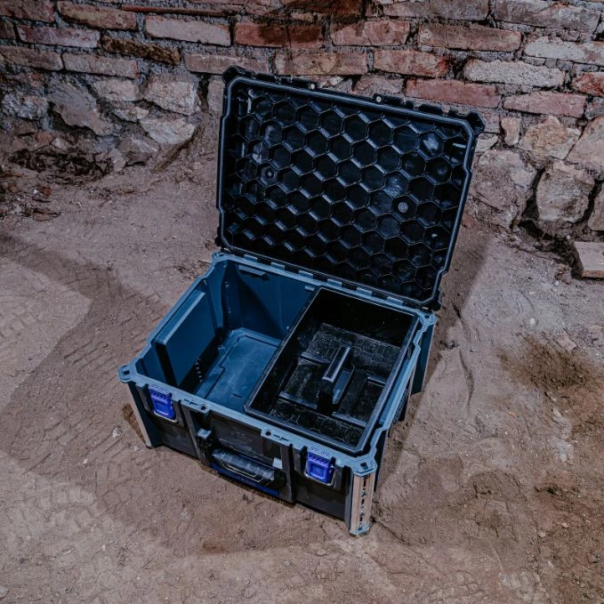 This model includes an insert tray and features IP65 dust and water protection, the one-hand click stacking system, integrated ProClick rails, M6 mounting threads, and padlock compatibility. It also works as a base for a portable workstation, giving you even more on-site versatility. This is the “bring everything for the job” box, perfect for days when your work demands more than just hand tools.