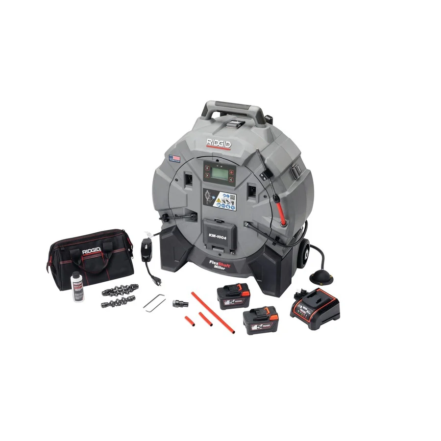 When you’re tackling heavy buildup, grease, scale, or light roots in small-to-medium diameter pipe, versatility and control matter. The RIDGID KM-1004 FlexShaft Milling Machine is built specifically for pros who need one machine that can both clean and mill across a wide range of pipe sizes, without being tied to a single power source.